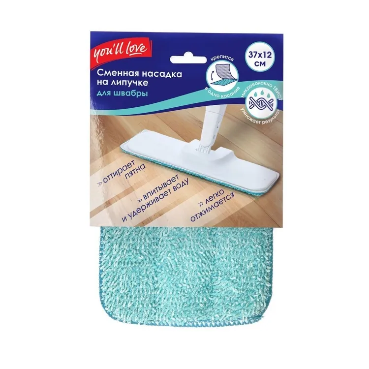 "You'll love" Насадка для швабры на липучке из микрофибры 37х12см