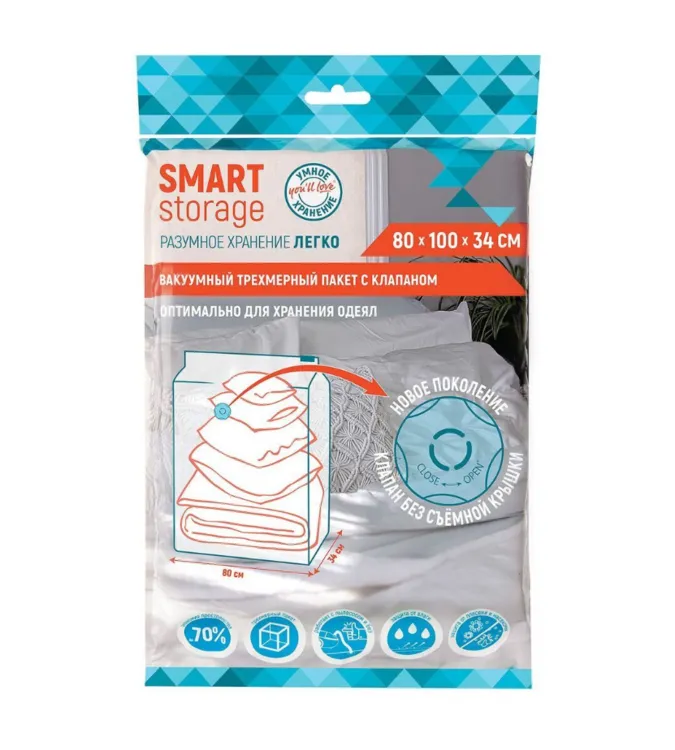 "You'll love" Пакет вакуумный "Smart Storage" трехмерный с клапаном 80х100х34см
