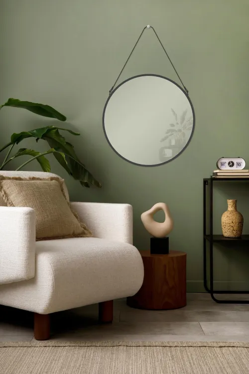 Это настенное зеркало не только функциональное, но и долговечное изделие, отличающееся высоким качеством и эстетикой. Оно идеально подходит для использования как отдельный элемент декора или в сочетании с другой мебелью. Кроме того, его можно легко повесить за ремень, что обеспечивает удобство в установке и использовании.